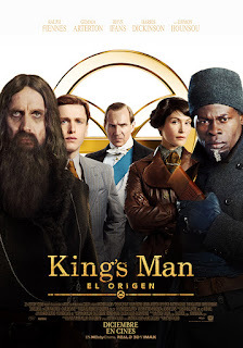King’s Man - El origen. Director: Matthew Vaughn. Protagonistas: Ralph Fiennes (Orlando, Duque de Oxford), Gemma Arterton (Pollyanna "Polly" Wilkins), Rhys Ifans (Grigori Rasputin), Matthew Goode (capitán Morton), Tom Hollander (Rey Jorge, Kaiser Guillermo II, Zar Nicolás II), Harris Dickinson (Conrad Oxford), Daniel Brühl (Erik Jan Hanussen), Djimon Hounsou (Shola), Aaron Taylor-Johnson (Archie Reid), Valerie Pachner (Mata Hari), Todd Boyce (Alfred DuPont), Aaron Vodovoz (Príncipe Felix Yusupov), Ron Cook (Archiduque Franz Ferdinand), Branka Katic (Emperatriz Alexandra Feodorovna), August Diehl (Vladimir Lenin), Ian Kelly (Woodrow Wilson) y Stanley Tucci (Chester King, embajador de los EE.UU.), entre otros. Participación especial de David Kross (el hombre del bigote). Guionistas: Matthew Vaughn y Karl Gajdusek, basado en el cómic