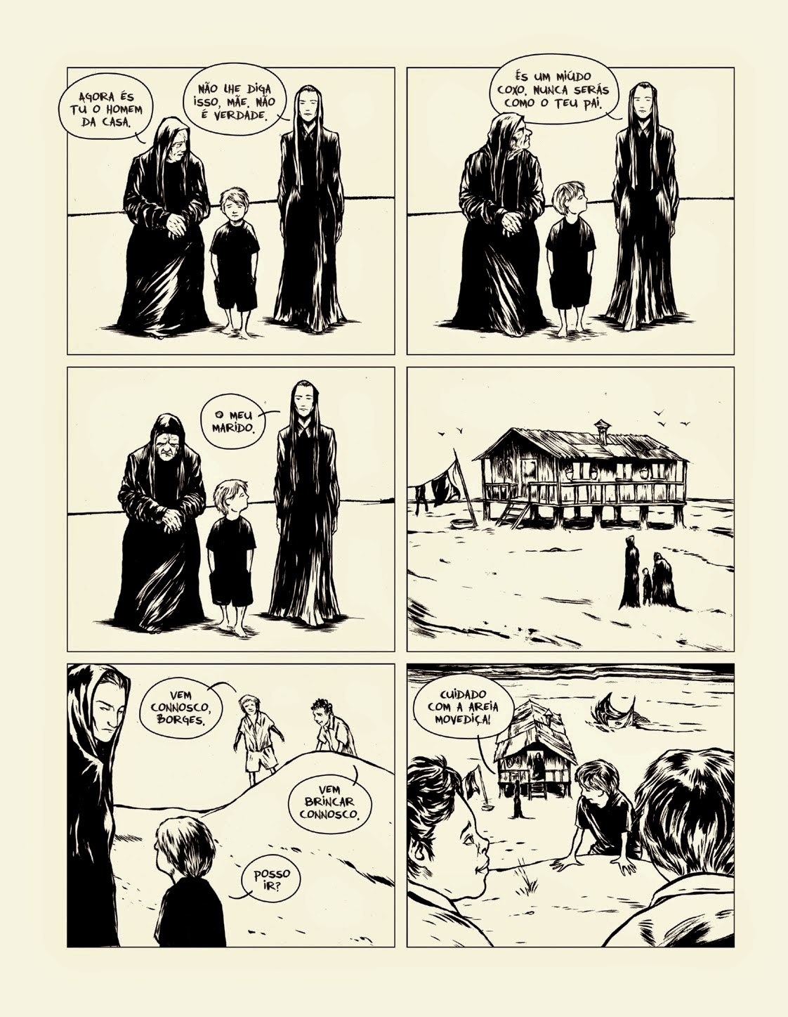 (Información de prensa) El 25 de octubre saldrá a la venta, en Portugal, Sepulturas dos pais, nuevo trabajo de la dupla David Soares y André Coelho. Editada por Kingpin Books, se trata de una historia de terror, simultáneamente trágica y poética, ambientada en una desolada y aislada villa de pescadores.