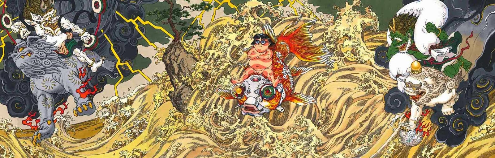 El mural, que estará listo recién en marzo del año que viene, muestra a un niño montado en una carpa robótica, flanqueado por Fūjin y Raijin, dioses del viento y el trueno de la mitología japonesa, respectivamente.