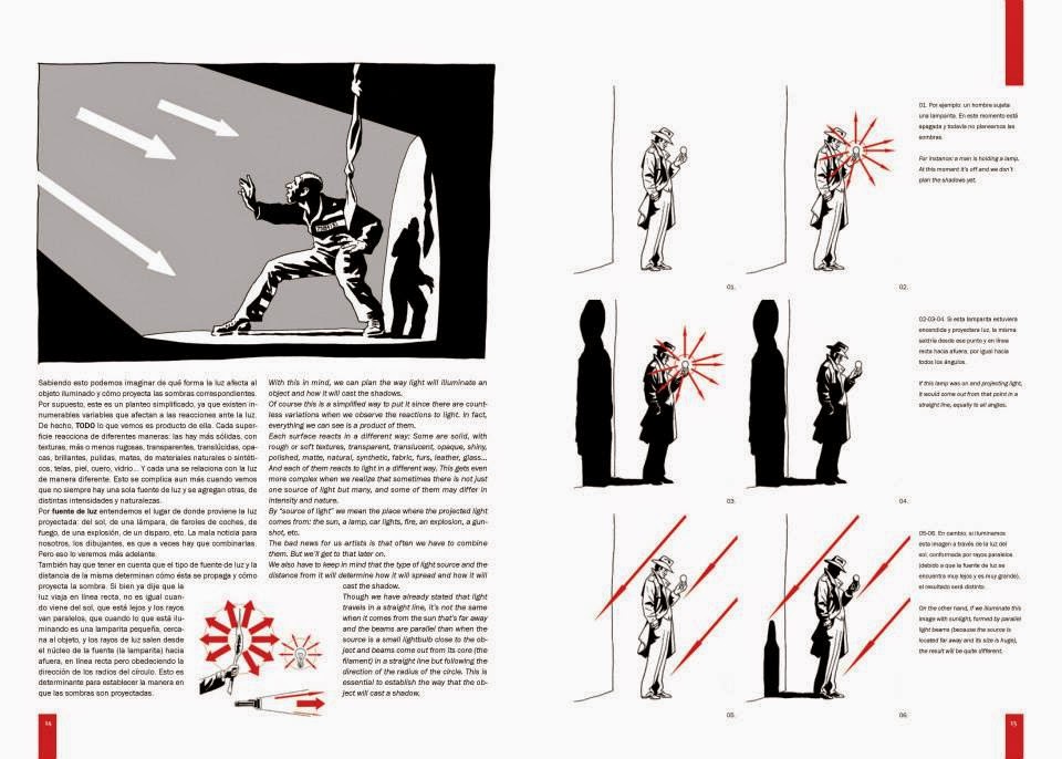 El volumen se organiza en dos secciones. En la primera, se desarrolla el método de trabajo con las luces y las sombras en la historieta en blanco y negro. A continuación, se presenta un panorama de su aplicación en ilustraciones a color. Finalmente, incluimos en esta edición un portfolio de obras de Fernández, comentadas por el autor, para que los lectores continúen aprendiendo mientras se deleitan con su arte, sólido e impactante.