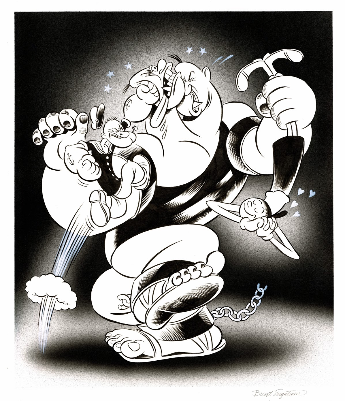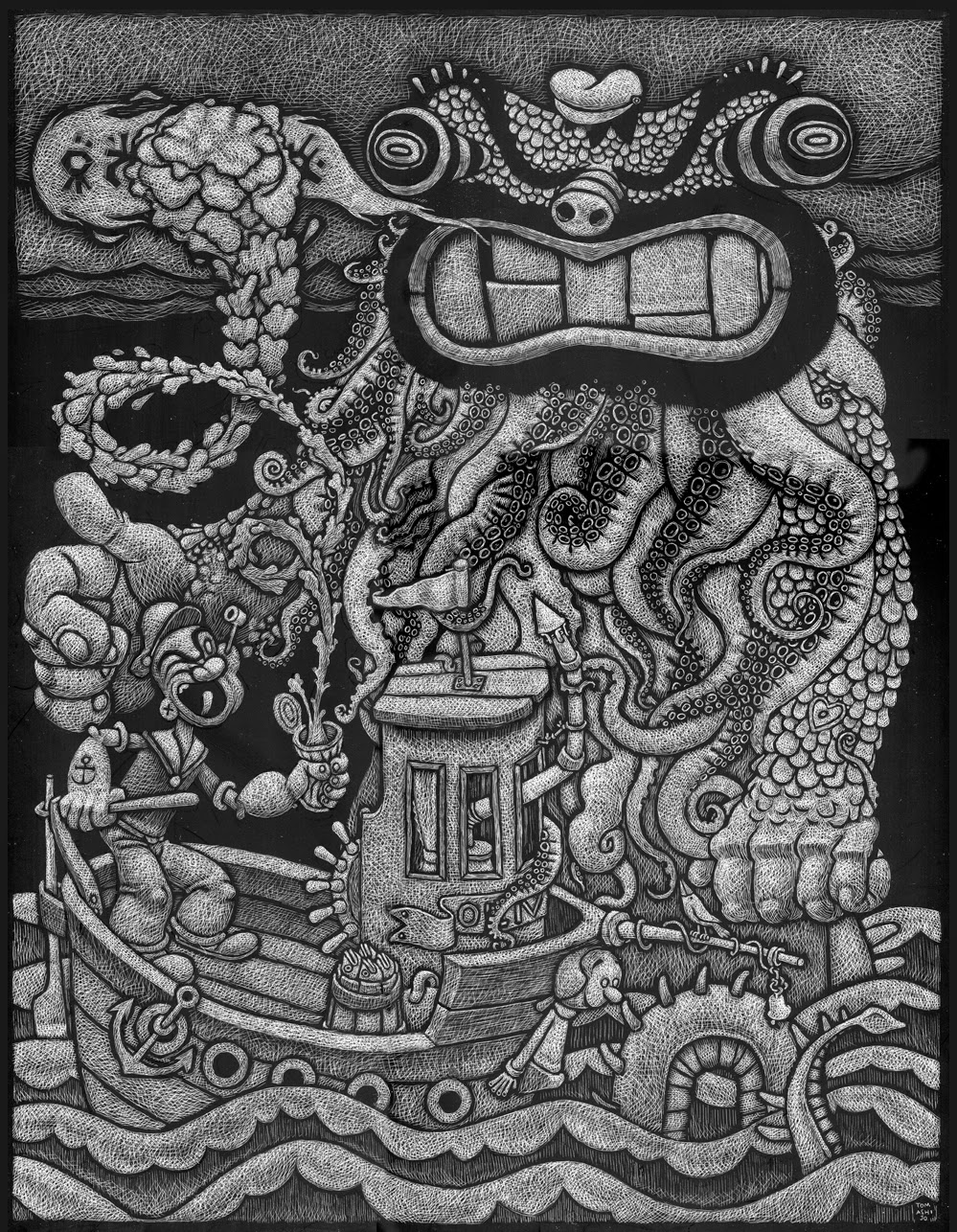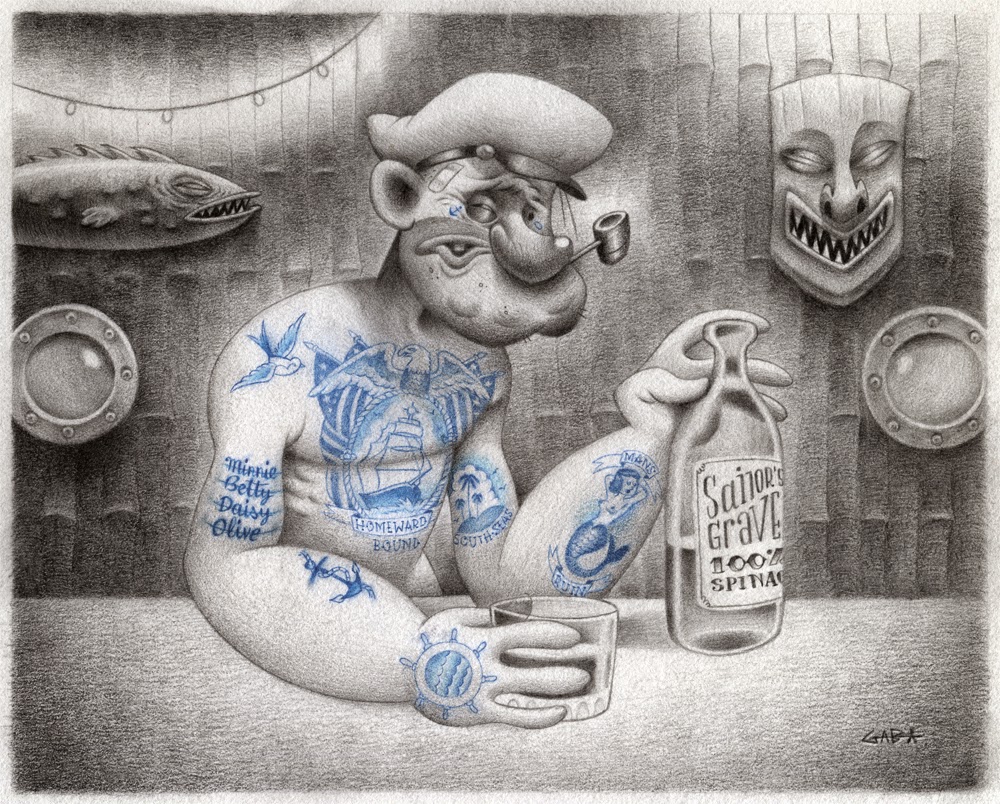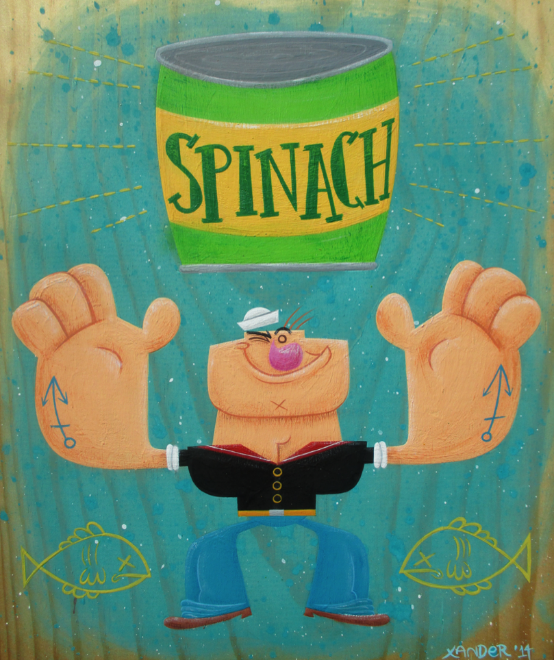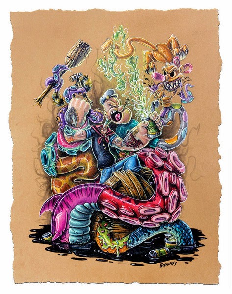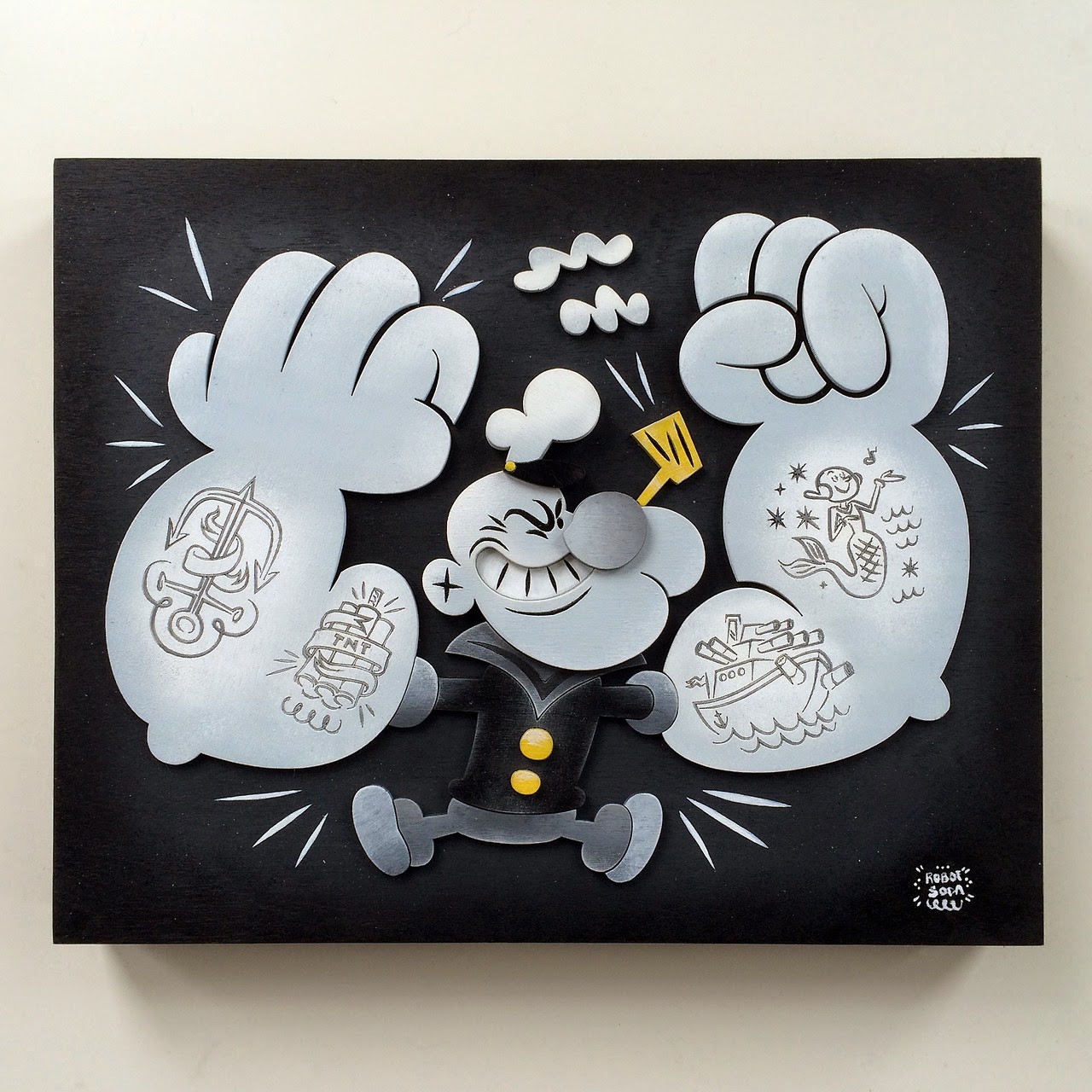 Atento al redondo cumpleaños de Popeye, el ilustrador ecuatoriano Chogrin (una de las mentes creativas tras los diseños en clave pop contemporáneo de Adventure Time), se unió con la galería de arte Hero Complex y, con la ayuda de muchos amigos, armó la muestra Strong to the Finich! , tributo a todos los popeyes que habitan al único e irrepetible Popeye.