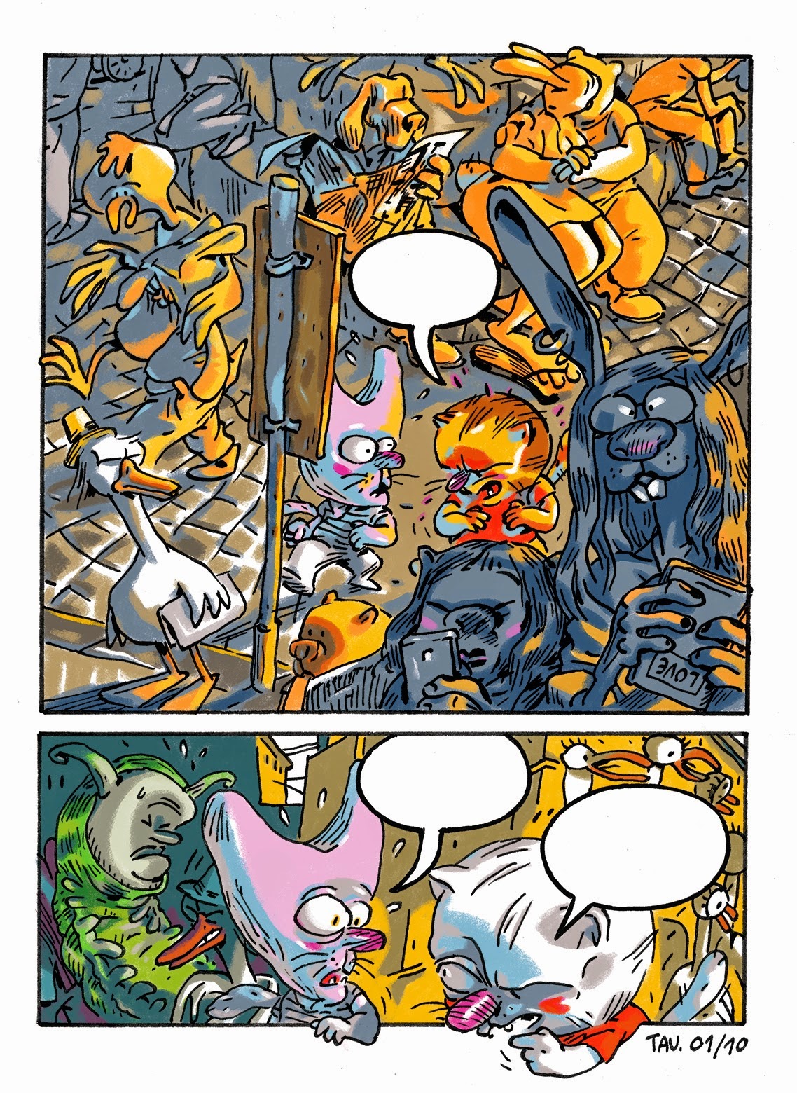 Zapping! - Alteraciones de la mítica Zap. La revista fundacional de la historieta underground fue Zap. Desde allí, es decir, 1968, Robert Crumb y sus siete magníficos (que iban desde el surfer cristiano Bill Griffith hasta el motoquero Spain Rodriguez) capturaron el remolino que era Estados Unidos y lo comprimieron en el fanzine más famoso de la historia. Junto a Fantagraphics, Comicópolis presenta está muestra exclusiva con imágenes de todos los números de Zap, muestra que alterada y rebelde, captura la esencia de la revista que le cortó el cuello a Estados Unidos para chorrear tintas de insurrección y sátira social.