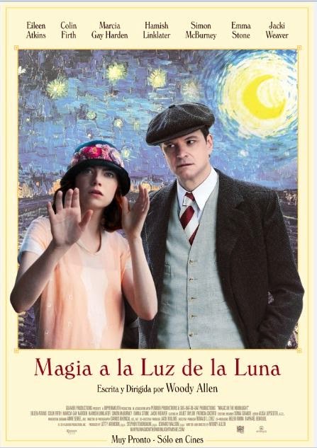 (Información de prensa) La nueva comedia romántica escrita y dirigida por Woody Allen llega a la Argentina el próximo 9 de octubre. Magia a la luz de la Luna (Magic in the Moonlight, 2014) está protagonizada por Eileen Atkins, Colin Firth, Marcia Gay Harden, Hamish Linklater, Jacki Weaver, Emma Stone, Erica Leerhsen, Simon McBurney, Antonia Clarke y Jeremy Shamos, entre otros.