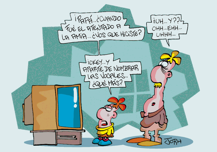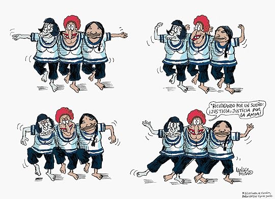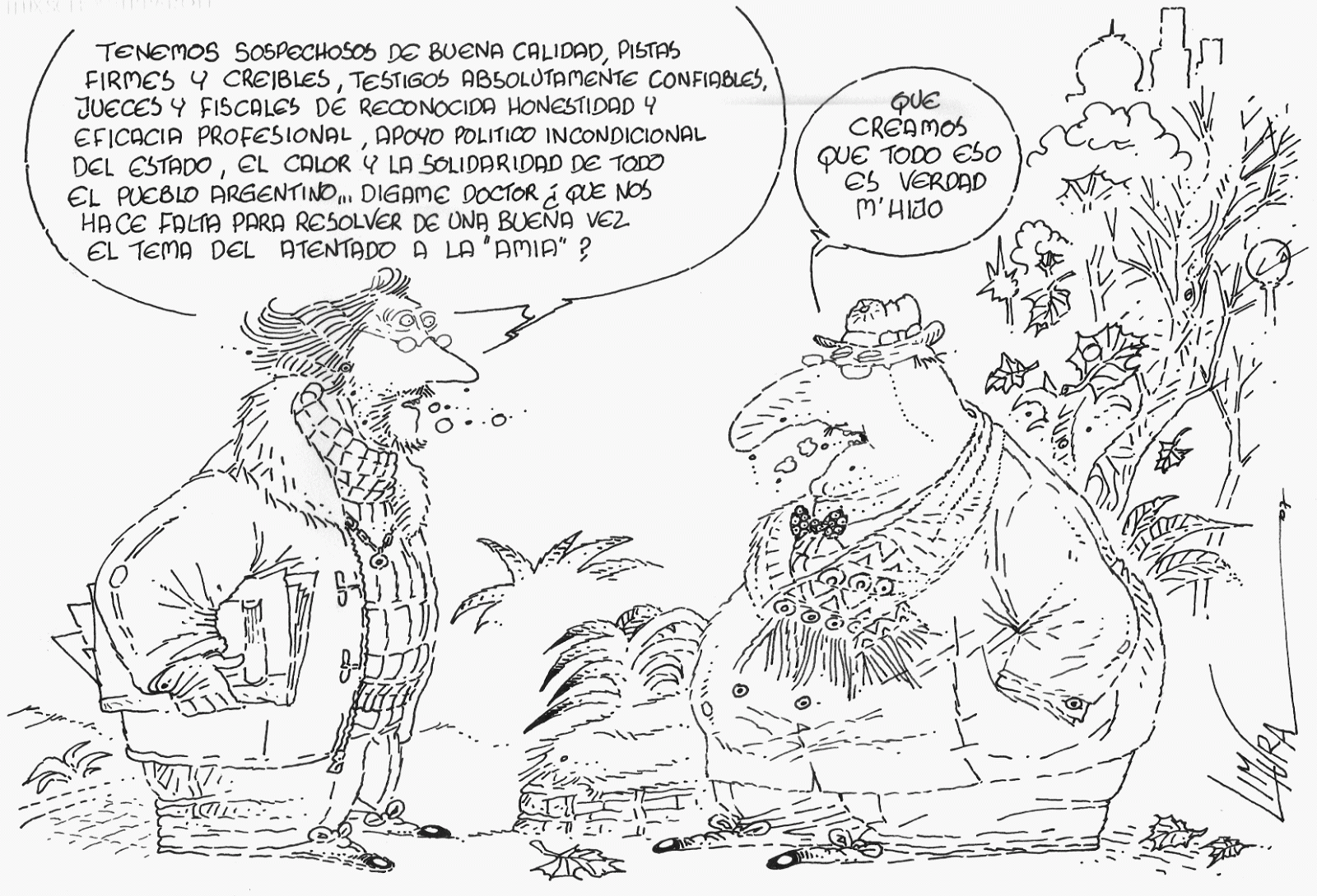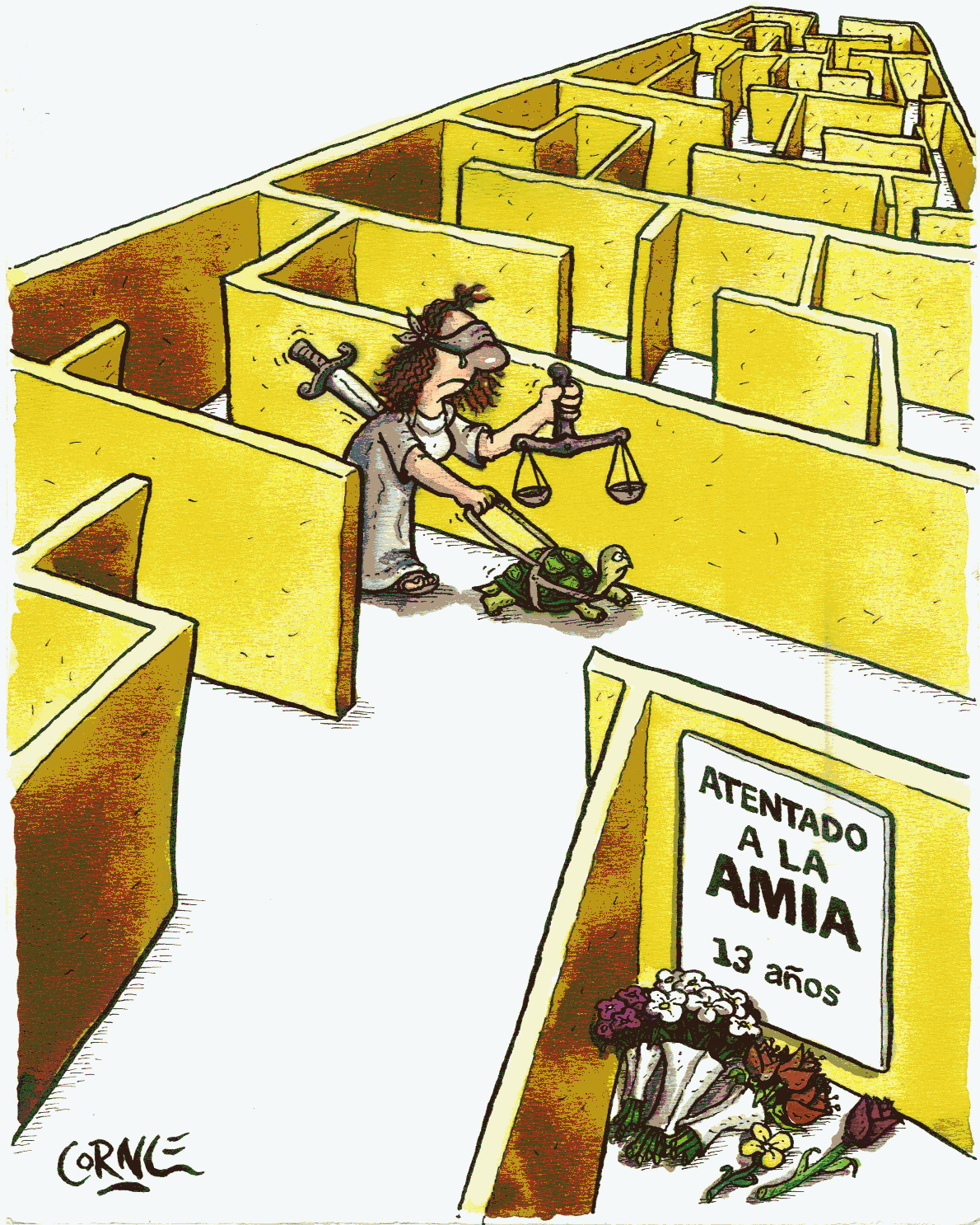 En 2007, un grupo de dibujantes y humoristas argentinos fue convocado por la AMIA para que su arte siguiera levantando los reclamos de justicia y memoria que todo el pueblo argentino demanda. Memoria ilustrada , así se llamó esa exposición que regresó, ampliada, dos años después (como este texto de nuestra vieja entrada), para evitar que el olvido se enseñoree, una vez más, sobre esta tierra.