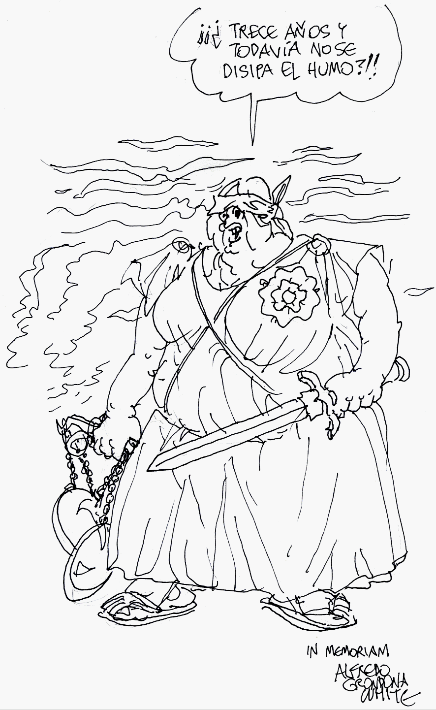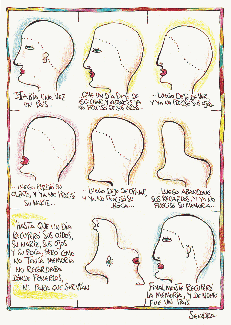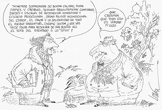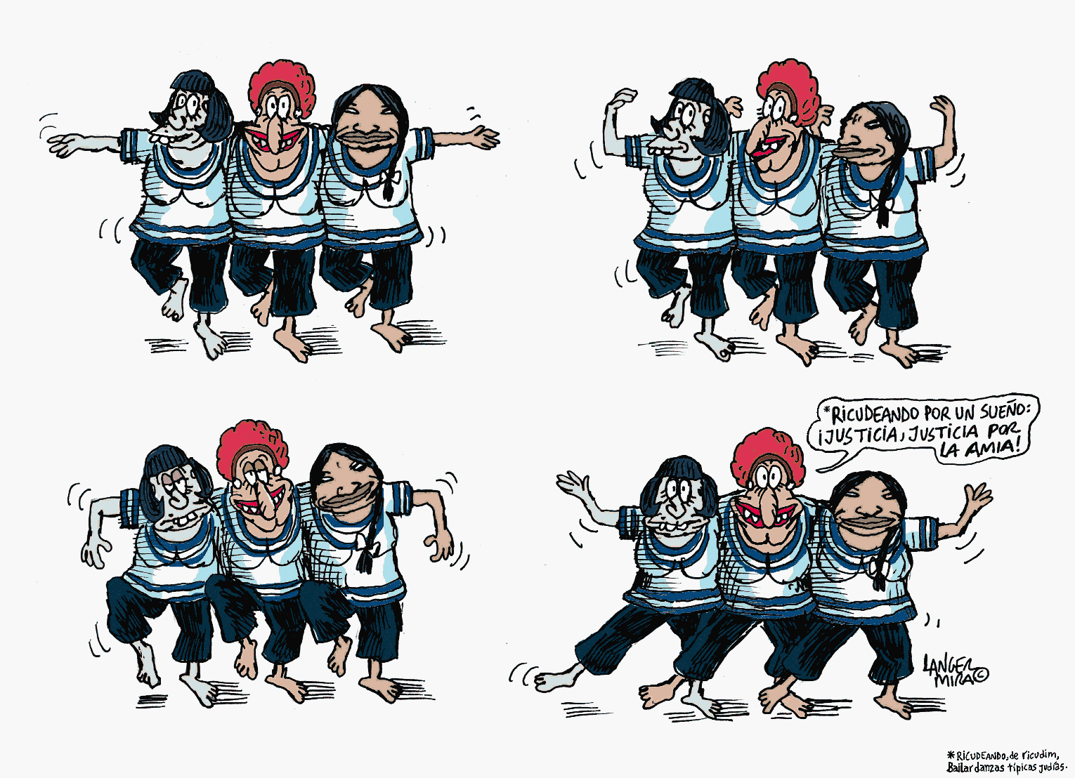 En 2007, un grupo de dibujantes y humoristas argentinos fue convocado por la AMIA para que su arte siguiera levantando los reclamos de justicia y memoria que todo el pueblo argentino demanda. Memoria ilustrada , así se llamó esa exposición que regresó, ampliada, dos años después (como este texto de nuestra vieja entrada), para evitar que el olvido se enseñoree, una vez más, sobre esta tierra.