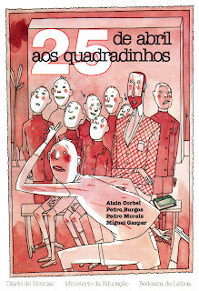 25 de abril aos quadrinhos. Guionista: MiguelGaspar. Dibujantes: Alain Corbel, Pedro Burgos, Pedro Morais. Coloristas: Alain Corbel, Pedro Burgos, Pedro Morais y Cláudia Silva. Portadista: JoséMaria Ribeirinho, sobre una ilustración de Alain Corbel. Coordinadores: AntónioJosé Teixeira, João Paulo Cotrim. DN / Ministerio de Educación de Portugal /Bedeteca de Lisboa. Portugal, 26 de abril de 1999.