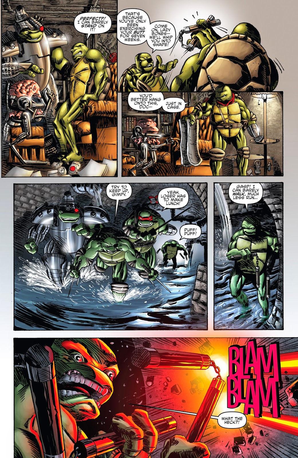 Y si es cierto que para muestra basta un botón, entonces este es el botón correcto. No por la calidad específica de cada corta aventura incluida en el ejemplar (que, la verdad, no supera la media), sino por el impacto global que alcanza (y expone con meridiana claridad) el trabajo editorial de Bobby Curnow, responsable principal (supongo) de que el resultado final de la lectura sea infinitamente superior al de la sumatoria de sus partes constituyentes. Porque logra poner en perspectiva (y en movimiento) las diferentes capas de sentido que envuelven a Las Tortugas Ninja, manteniendo la perspectiva histórica, abriendo las puertas necesarias para el desarrollo de la licencia hacia otros nortes y, sobre todo, acertando en las instantáneas escogidas para dejar testimonio de las diferentes versiones que la serie ha conocido en el mundo de la narración gráfica.