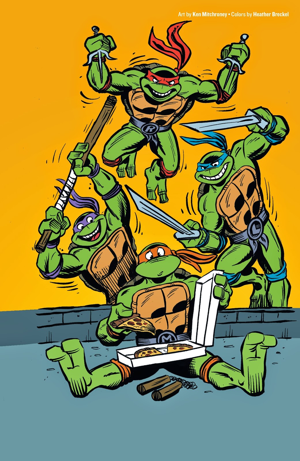 Mediante historietas unitarias, ilustraciones, artículos periodísticos y la recuperación de una memorabilia (casi) inhallable, las principales instancias evolutivas de las tortugas salen a escena, sin mezclar sus identidades bien definidas, logrando el acoplamiento imaginario que permite exponer el verdadero alcance de la licencia, que es la convivencia de infinitas tortugas ninja dentro de Las Tortugas Ninja. Ahí están las aventuras urbanas de corte superheroico dark e introspectivo, la preocupación medioambiental y el deseo de concientizar infantes sobre los peligros que acechan a las especies en extinción, el misticismo oriental, cierta tensión entre lo espiritual y lo religioso, el arrebato de las violencias sin sentido, la vuelta de tuerca que le posibilitó la apertura al budismo zen, la exploración de las vidas pasadas y la idea de la reencarnación.