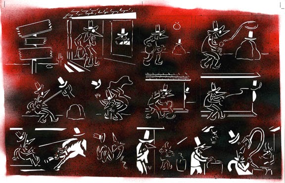 Spy vs. Spy, en versión impresa (arriba) y stencil (abajo)