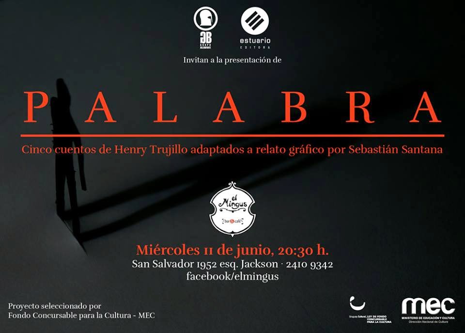, cinco cuentos de Henry Trujillo adaptados a relato gráfico por Sebastián Santana, el miércoles 11 de junio a las 20:00 horas, en El Mingus (San Salvador 1952, esquina Jackson, Montevideo, Uruguay).