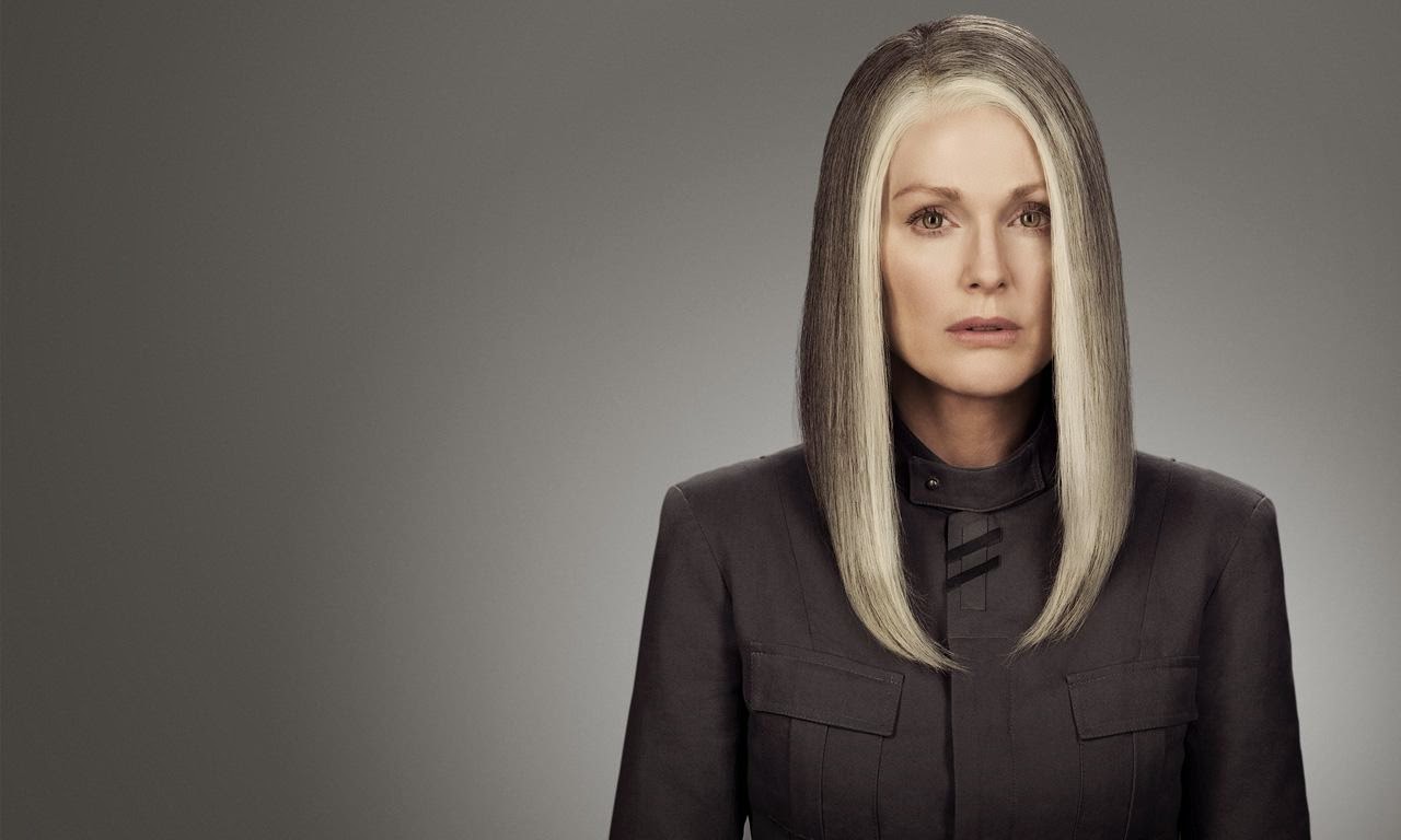 Philip Seymour Hoffman (Plutarch) y Julianne Moore (President Coin)