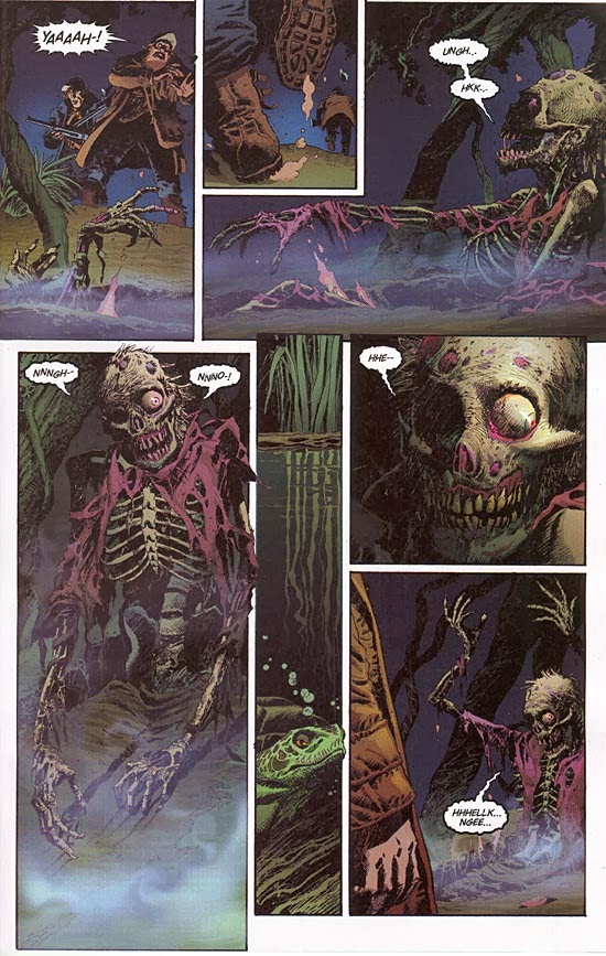 Con toda la introspección realista que pueda caber en una historieta de género, a caballo entre los superhéroes y el horror psicológico, Andy Diggle y Enrique Breccia respondieron esta pregunta en el primer arco argumental del cuarto volumen de Swamp Thing, publicado por DC/Vertigo a partir de mayo de 2004, cuyas dos primeras entregas acaban de aparecer en los kioscos argentinos gracias a la filial sudamericana de la española ECC. Hecha con la necesidad de reestablecer cierto status quo para la prolongación de una serie regular abrumada por los picos creativos del pasado (sobre todo, la etapa guionada por Alan Moore), el cómic sabe que su destino final es una vuelta a las fuentes temáticas originales, reducción de poderes y recupero parcial del veterano panteón de personajes incluido. Pero en este trayecto, como en todos los viajes en que se conocen de antemano los puntos de partida y de llegada, lo interesante viene dado por las particularidades del recorrido. Y estas páginas nos garantizan, al menos, dos instancias trascendentales.