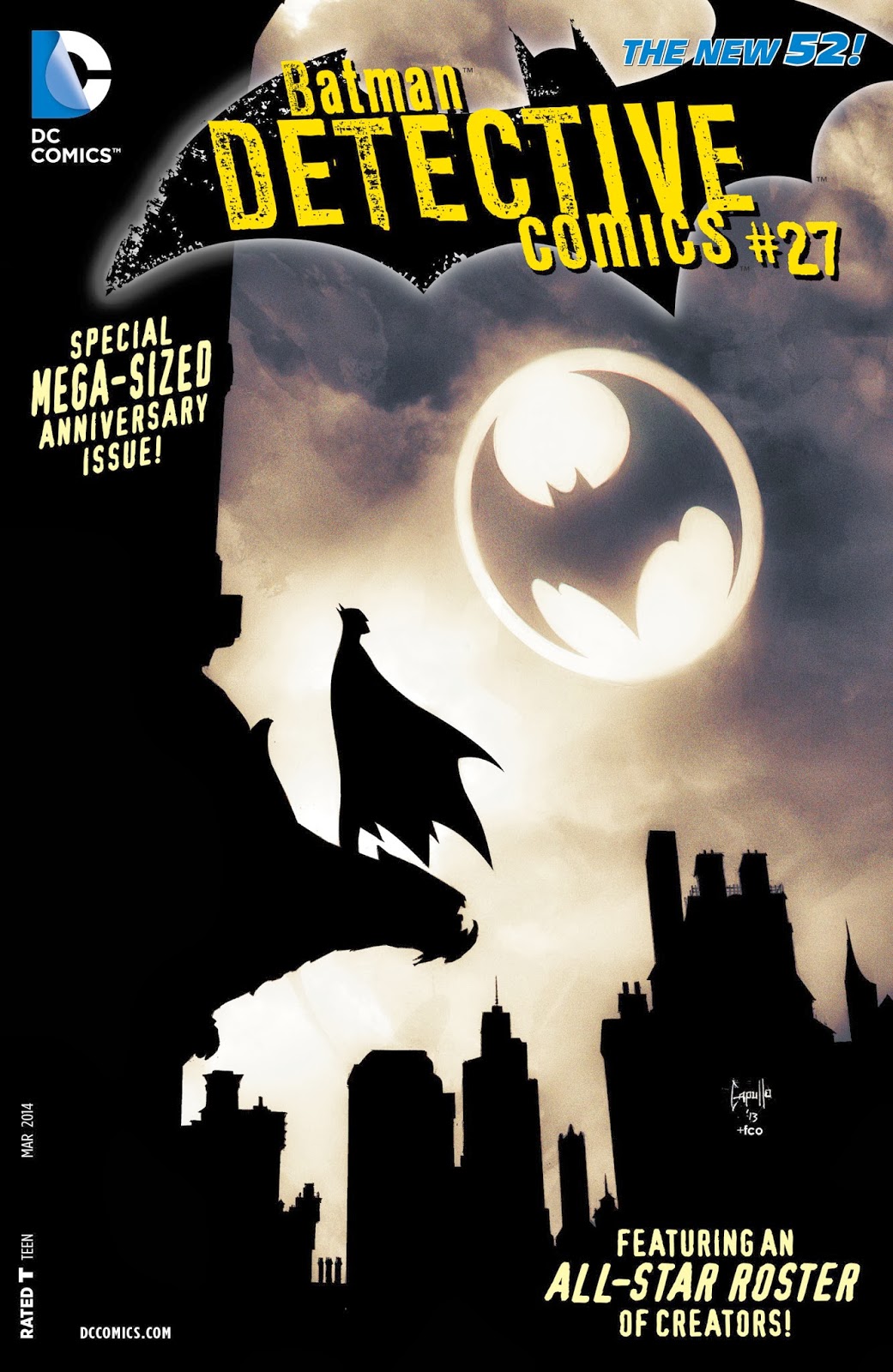 Cómo no aprovechar la volada. Gracias al relanzamiento de todos los títulos de DC en 2011, el volumen II de Detective Comics (cuyas siglas dieron nombre a la editorial) llega al número 27 en el arranque de este 2014, año en que se cumplen 75 años de la primera aparición de Batman en el mítico número 27 del primer volumen de la revista, allá por 1939. Y nada mejor para inaugurar un largo periodo de festejos, entonces, que este ejemplar especial por varios motivos. Por la cantidad de páginas, por el abanico de autores convocados; y por la calidad del resultado final, muy superior al obtenido por el celebratorio Batman Nº 700, en dónde el contenido no estuvo a la altura de la forma.