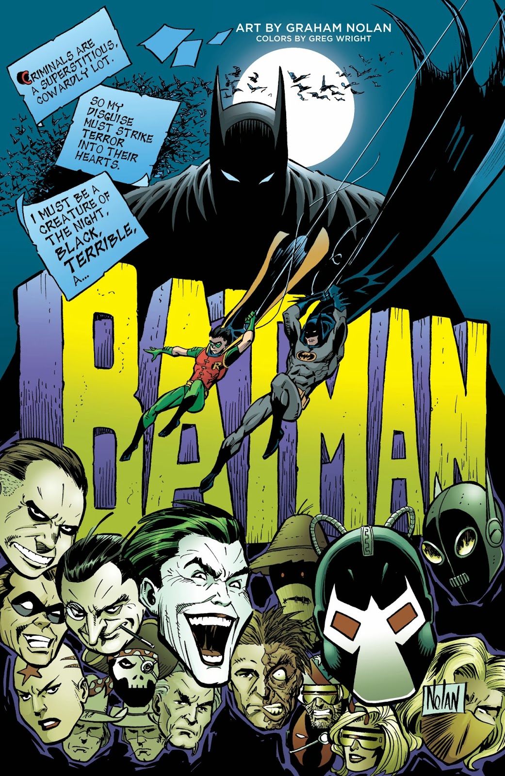 Mediante distintos enfoques y confluentes tratamientos, mayormente liberados del lastre de una obligatoria continuidad canónica, los relatos crecen en representatividad icónica, sumando capas de lectura metahistorietística que operan sobre la naturaleza esencialmente trágica de Batman, elemento clave para comprender su longevidad. El (o los) superhéroes que pueblan estas páginas, se pasean por el drama y la comedia ligera, exhibiendo las máscaras que esconden el trauma original de ausencia y muerte, de dolor y placer culposo. Todo (o casi) contado desde la anécdota pequeña, minúscula y hasta intrascendente, pero que a nuestros ojos se abre revelando el verdadero alcance de la constitución identitaria de un mito moderno y global, capaz de sobreponerse a todas las variables industriales y creativas de las últimas siete décadas.Fernando Ariel García