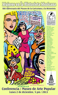 El evento se llevó a cabo en la sala de conferencias del Museo de Arte Popular MAP, ubicado en Revillagigedo 11, esquina Independencia, en el centro histórico capitalino. El programa constó de tres partes:1) Dedicatoria del evento a fundadores y amigos del Mucahi, fallecidos: Joaquín Cervantes Bassoco, Antonio Gutiérrez Salazar, Benjamín Orozco Méndez, Rubén Lara Romero, Sealtiel Alatriste Batalla y Martha Mora.2) Homenaje a las historietistas mexicanas: Participaronn Elia D´Erzell, Laura Bolaños Cadena, María Luisa López, Maira Benítez, Carmen Hernández, Guadalupe Hernández y Susana López Ávila.3) Los personajes femeninos de la historieta mexicana: Participaron los historietistas asistentes.Invitados de honor, historietistas y familiares de historietistas fallecidos:Familiares de Joaquín Cervantes Bassoco, creador de Wama, Pies Planos, El Pirata Negro, Tawa y Batú.Elia D´Erzel: Escritora, se inició en 1943 adaptando novelas de su mamá Catalina D´Erzell para historieta, posteriormente escribió argumentos propios, colaboró en Chamaco, Pepín y la editorial Edar.Laura Bolaños Cadena: Escritora, se inició en 1942 como dibujante y posteriormente eligió ser escritora. Fue directora de Chamaco y fundadora de El Libro Semanal, La Novela Policiaca y Novelas de Amor, de Publicaciones Herrerías – Novedades.Carmen Hernández: Escritora durante más de 50 años de las publicaciones de Novedades Editores.Guadalupe Hernández: Escritora de las publicaciones de Novedades Editores. María Luisa López: Como escritora colaboró en las Minis de Edar, Mini Historias, Mini Leyendas, Mini Terror y Mini Policíaca, entre otras.Maira Benítez: Escritora e investigadora de la historieta, autora del libro Gabriel Vargas Cronista Gráfico.Lidia Carrasco de Lara: Viuda de Rubén Lara, creador gráfico de Fantomas.Rafael Márquez: Creador de El Libro Rojo, El Libro Vaquero y El Libro Policíaco de Color.Susana López Ávila: Supervisora de publicaciones de Novedades Editores.Ángel Mora: Creador gráfico de Chanoc y El Payo. Sixto Valencia: Creador gráfico de Memín Pinguín.Francisco Ortega: Dibujante de El Libro Vaquero.Zenaido Velázquez: Dibujante colaborador de la editorial Mango Toukan.Jorge Rodríguez: Escenógrafo, colaborador de Ejea y Mina.Vicente Samperio: Dibujante de la historieta Por Favor.Antonio Santillan: Dibujante de Editorial Novaro y El Mil Chistes.Gregorio Grande: Dibujante de Mini Hermelinda Linda.Familiares de Leopoldo Zea Salas, primer dibujante de Kaliman.Rene del Valle Guerrero: Dibujante de Kaliman.Familiares de Pedro Zapiain Fernández, argumentista de Chanoc y creador de la historieta Balam.Familiares de Constantino Rábago, historietista y antropólogo.Federico Antonio Velázquez Fraga: Dibujante de Tradiciones y Leyendas de la Colonia.Familiares de Daniel Muñoz, creador de El Pantera.Antonio Monroy Poitevin: Dibujante de Novedades Editores.Salvador López Alcazar: Dibujante de historietas en Sensacionales, La Ley del Revólver y El Libro Vaquero.Víctor Díaz Pérez: Escritor de argumentos para El Mil Chistes, La Ley del Revólver, Presidio.Mario Garcés: Colaborador en el equipo de Gabriel Vargas, y editor.Gustavo Galán: Dibujante de El Mil Chistes, y editor.Leopoldo Becerra: Historietista de La Dama de los Museos.José Luis Durán: Portadista de Adelita y las Guerrillas, El Santo y dibujante de las historietas mexicanas de El Sorprendente Hombre Araña publicadas por La Prensa.Juan Quezada: Caricaturista e historietista de El Mil Chistes.Cintia Bolio: Caricaturista e historietista.Luis Sergio Tapia López: Dibujante de La Máscara Roja y Aztecas Contra Romanos.Román Rivas: Caricaturista.Jesús Morales (Moraliux): Dibujante de Simón Simonazo y Video Risa.Rubén Armenta: Creador de la historieta El Monito.Más información:http://comicsdehistoria.blogspot.mx/http://museocomicmexicano.blogspot.co...