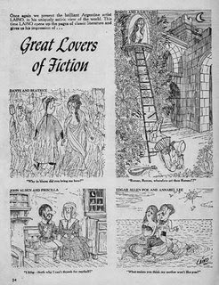 Compilando obra que va desde los ’40 hasta el año pasado (incluídas algunas memorables páginas realizadas para la estadounidense Cracked, famosa competencia de Mad, durante 1961), Laino pareciera pararse en el lugar donde lo individual confluye en lo colectivo, cuando la persona cobra trascendencia como parte sustancial de la familia y la sociedad en la que está inmerso. Algo que se nota (y se define) en los grandes escenas de masas, donde la importancia de las partes está equilibrada con la importancia del todo que las contiene. Las nociones de centro y periferia se me hacen siempre presentes, porque tal vez esa sea otra manera (más directa) de graficar la tensión existente entre la nacionalización de los idearios internacionales y la internacionalización de los idearios nacionales, esa entrega cultural que borró diferencias definitorias de identidades complementarias, para homogeneizarlas de acuerdo con parámetros representativos de una unidad falsamente aglutinadora.
