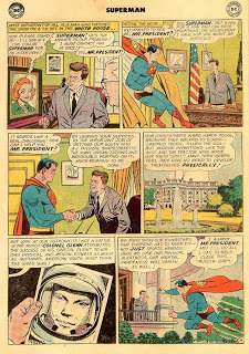 En el universo historietístico estadounidense, ese Dios del que hablaba Kennedy vestía pantimedias azules y capa roja, era un consagrado icono cultural y reinaba sobre los párvulos que consumían las seis publicaciones mensuales que lo tenían como protagonista. Más rápido que una bala y más fuerte que una locomotora, durante la década de los años 1960, Superman supo compartir sus viñetas con referentes populares inmortalizados por la pantalla de TV: Músicos como Los Beatles y Pat Boone, o pioneros del talk show como Steve Allen. Apoyado en el éxito comercial de estos cruces multimediáticos, Mort Weisinger (1915-1978), director editorial a cargo del destino del último hijo de Krypton, dio el paso que faltaba e incorporó como celebridad invitada al mismísimo Kennedy. Por vez primera, las historietas norteamericanas mostraban abiertamente los rasgos y las características físicas de un Presidente en ejercicio.