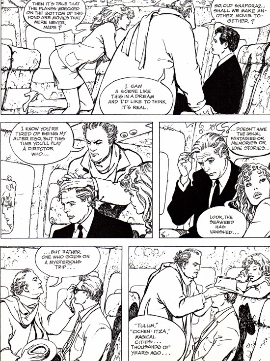 Aunque al principio no lo deseaba, Fellini se fue metiendo (y comprometiendo) más y más en la confección de la historieta, pasando a dirigir meticulosamente la diagramación de la página, los encuadres, el diálogo de los personajes y hasta el color aplicado en cada viñeta. Pero el cambio más importante lo imprimió al promediar la página 16. Cansado de verse dibujado, Fellini consiguió que su imagen se convirtiera en la de un apuesto y juvenil Mastroianni, a quien bautizó (no podía ser de otra manera) Snaporaz. En ese instante, Viaggio a Tulum dejó de parecer un homenaje a Fellini y se erigió en la nueva película de Federico. “Me sentí en mi ambiente natural, el de los estudios de cine, dejándome llevar por los cambios abruptos, el placer y la alegría de un viaje maravilloso al relato, a la invención –se sinceró el autor de Las noches de Cabiria–. Los lápices y pinceles del amigo Manara son el equivalente de mi puesta en escena, el vestuario, los rostros de los actores, los decorados y las luces que utilizo para contar mis filmes.” Serializada en la revista italiana Corto Maltese durante 1989, la historieta incorporó a su trama explícitos homenajes al noveno arte (se menciona a Flash Gordon y a Mandrake; aparecen Alejandro Jodorowsky y Moebius, autores de la saga de El Incal) en una aventura “fascinante y sugestiva justamente por lo que tenía de indescifrable”, como apuntó Fellini en el prólogo de la edición en libro.