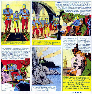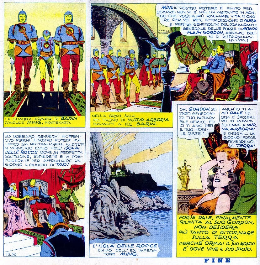 Notas: (1) Con los años, la autoría del Flash Gordon italiano ha sido seiramente puesta en duda, aunque el propio Fellini se la haya adjudicado en declaraciones periodísticas. Estudiosos italianos aseveran que el futuro cineasta sólo colaboró con Nerbini dibujando chistes sueltos, nunca tomando las riendas de los guiones de las aventuras seriadas. Además, indican como autor de los dibujos a Guido Fantoni, descartando la posibilidad de que hubieran sido realizados por Giove Toppi.