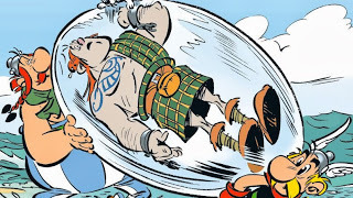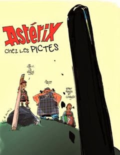 Sumatoria de todos los cliches de la serie, armada de acuerdo al recetario estándar que estipulara Uderzo, Astérix chez les pictes juega a retomar las sagas de los grandes viajes desarrollada por Goscinny en numerosos álbumes que le sirvieron para, entre otras cosas, construir sentido (y generar sentido del humor) a través de la comparación tópica entre las características nacionales representativas de galos, godos, normandos, hispanos, belgas y un colorido etcétera. Ferri y Conrad añaden a este recorrido a los pictos escoceses, en una historia básica centrada en la lucha entre clanes, con referencias (obvias y no tanto) al Capitán América, al monstruo del lago Ness y al piel roja Oumpah-Pah, primerizo personaje de la dupla Goscinny-Uderzo. Pero el amontonamiento, como suele suceder, no implica sumatoria.