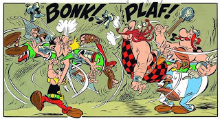 Una oportunidad no del todo aprovechada, hablando de Astérix, es una oportunidad perdida. Y este relanzamiento, a mi entender, falla al persistir en el anclaje de la aventura dentro de los parámetros genéricos de la comedia. Es decir, del entramado de secuencias pretendidamente humorísticas, con la intención de hilvanar una travesía que refiera a las situaciones cotidianas de la vida y genere la risa del público lector. Principalmente, porque en el adn originario de la irreductible aldea, Goscinny había hecho crecer el árbol de la parodia, o sea de la interpretación satírica de la existencia, de una obra de arte o de una temática específica. Apelando siempre a la ironía y dejando de lado la burla.