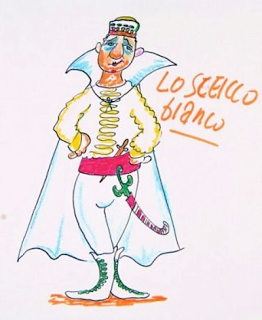 Dibujo de Alberto Sordi, caracterizado como El jeque blanco, realizado por el propio Fellini como anotación para su largomentraje homónimo