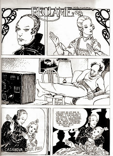 Fellini cayó obnubilado frente a estas cuatro (hoy clásicas) páginas. Y le concedió al dibujante un pasaporte al centro del mito. “Conocedor de mi admiración hacia su persona y su obra –comenta Manara–, Federico me invitó a Cinecittà a presenciar la filmación de Y la nave va”. Un momento histórico que, sin saberlo los protagonistas, daría comienzo a una hermosa amistad. Y a una notable colaboración. Devolviendo gentilezas, Manara ambientó una de las escenas más calientes de ¡Clic! en la penumbra de un cine donde se proyectaba, no casualmente, el Casanova que había filmado Fellini. Piropeándose en cuanto reportaje concedieran, los dos artistas fueron descubriendo afinidades y tomando posiciones conjuntas. En 1986, mientras Fellini llevaba adelante su cruzada contra el por ese entonces magnate televisivo Silvio Berlusconi, debido a la insufrible cantidad y duración de las tandas publicitarias que se le infligían a sus películas al ser emitidas por la televisión privada italiana, Manara realizó Reclame (“publicidad” en italiano), manifiesto en donde el Casanova interpretado por Donald Sutherland queda descerebrado tras las interferencias comerciales que embrutecen su mensaje artístico.
