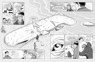 Todo esto, desde lo más simple hasta lo más complejo, desde lo más superficial hasta lo más profundo, aparece abordado y reflejado en Mocha Dick. La leyenda de la ballena blanca, impresionante fresco de Francisco Ortega y Gonzalo Martínez, aparecido originalmente en Chile en diciembre de 2012 y publicado recientemente en la Argentina, haciendo justicia a una obra de tamaña envergadura. Y si cada página de esta historieta termina leyéndose en paralelo al Moby Dick es porque los autores nos cuentan la historia que dio origen y sustento a la obra y al mito de Moby Dick, recuperando la ascendencia mapuche que Jeremiah N. Reynolds no supo/pudo/quiso reflejar del todo en su corto relato Mocha Dick, The White Whale of the Pacific (1839); influencia decisiva para la novela fundacional que Herman Melville (ballenero además de escritor) publicó en 1851.