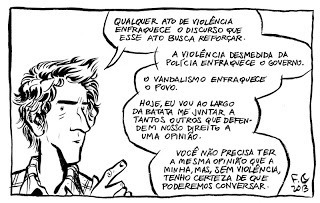 A esta altura, dos semanas después de que se iniciaran las multitudinarias protestas en las calles de las ciudades más populosas (y representativas) del Brasil, está claro que el motivo de las manifestaciones va más allá del aumento del transporte público; y que las mismas tienen que ver con cuestiones mucho más profundas y arraigadas. Más y mejor salud, más y mejor educación, combate efectivo contra la corrupción, representada en los millonarios montos gastados en el fútbol (Copa Confederaciones y Mundial) en lugar de ser invertidos para garantizar el pleno acceso a los derechos básicos de todos los ciudadanos. “Como Presidenta, tengo que oir la voz de las calles”, dijo Dilma Rouseff en conferencia de prensa. Esa voz que historietistas y humoristas gráficos (locales e internacionales) están amplificando con sus trabajos.
