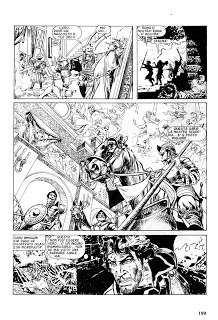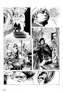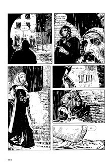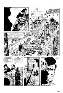 La saga que conforman estos libros no es una saga cualquiera. No, señor. Se trata del Saqueo de Roma, una de las instancias definitorias y representativas de la estatura creativa del Dago de Robin Wood y Carlos Gómez (y me atrevería a decir del Dago, a secas). Publicada por entregas de 12 páginas semanales en el LancioStory italiano, entre fines de 1997 y principios de 1998, cada capítulo unitario va dando forma al tapiz general, sedimentando sentidos, sumando miradas, enfrentando posiciones. Porque esta instancia romana de la travesía entabla diálogos resonantes entre las pequeñas intrigas y los grandes acontecimientos que se entremezclan a los pies de Dago, durante la instancia más shakesperiana de esta serie con fuerte impronta folletinesca. La violencia, la furia, la brutalidad, la discriminación, el miedo, el heroísmo, el amor, la guerra como catalizador de lo más alto y lo más bajo que el Hombre tenga para exhibir ante sus pares. La contradicción que funde y sustenta a la naturaleza humana, la discusión conceptual y física (fuerte y sin concesiones) entre los significados de la fe y el fanatismo, entre la creencia religiosa y la institucionalización ritual encarnada por la Iglesia Católica. El instante más álgido en la lucha de poder que mantienen el Protestantismo y el Catolicismo.