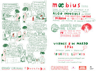(Información de prensa) Moebius liceo tiene el placer de invitarlos a la presentación de los nuevos libros Algo imposible, de Ernán Cirianni; y Por dentro/Inside y Diario, de Power Paola. Además, quedará inaugurada una muestra de dibujos y diarios de Power Paola.