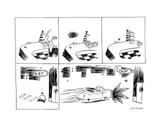 La mirada del austríaco Mahler abreva en Chaplin y Los Simpsons, en Edward Gorey y el espíritu anárquico de los viejos cartoons de la Warner, sacando la máxima expresividad del trazo simple, mostrando lo esencial a través de lo despojado. En esta serie de historietas mudas, mínimas, publicadas originalmente en la revista Lapin (vitrina de la editorial francesa L’Association), los arquetipos clásicos del cine de terror se nos aparecen en situaciones de una cotidianeidad insignificante, chata, llena de tiempos muertos, rayana en el aburrimiento. Estragados por la neurosis citadina y el peso de la fama perdida, imposibilitados de responder a la expectativa que supieron generar sus mitos, los personajes ya no están ni a la altura de sus conmovedores deseos de perdurabilidad. Dioses rebajados a la categoría de humanos, han sido abandonados hasta por el olvido.