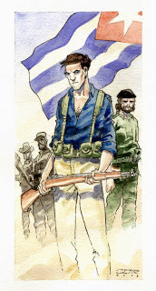 Nero Maccanti y Che Guevara, dos de los protagonistas de Hasta la victoria!, en una ilustración realizada especialmente como Ex Libris para la FNAC de Grenoble, Francia