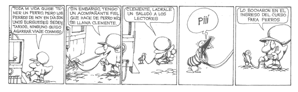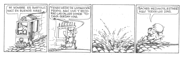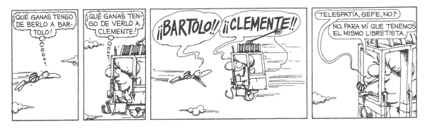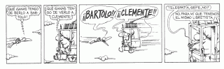 Este libro se nutre de las tiras aparecidas en 1973, el año del debut de Bartolo, la historieta que sería rebautizada Bartolo y Clemente, después Clemente y Bartolo y, mucho antes del final, simplemente Clemente. Los años formativos del estilo Caloi que, a mi gusto, siguen siendo los mejores de la tira, cuando todavía no estaba tan atada a la cotidiana editorialización del humor periodístico y se permitía sumergirse de lleno en las aguas de una poética suburbana y porteña, hecha de ternura, calle, melancolía y absurdo. Cuando conjugaba en cuatro cuadritos toda la espontaneidad, la alegría, la pasión, el enamoramiento que cabe en el barrio como síntesis de la vida, como medida de la existencia humana, de la celebración de la amistad, de las mujeres, del fútbol, de la esquina. Cuando exhibía con descaro la filosofía del bar hecha de tragos y confesiones, de risas tristes, de cuatro de copas y anchos de espada; con la contradicción, la ironía, la pedantería atorrante, los delirios de grandeza del que tiene mucho vuelo por levantar y mucho kilometraje recorrido, de ese bicho que es y no, porque es síntesis metafórica de una identidad, asunción de un inconsciente colectivo que en ese momento estaba en vías de extinción y hoy es sólo fugaz recuerdo, memoria intacta, ausencia siempre presente. Más que una bandera nacional y popular, elemento constitutivo del ser nacional que el pueblo supo (y sabe) levantar como bandera.