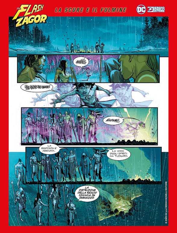 , DC Comics y Sergio Bonelli Editore presentaron en Italia el segundo encuentro entre los personajes de ambas escuderías. Desde el 10 de diciembre, The Flash & Zagor: La scure e il fulmine se consigue sólo en librerías especializadas italianas y por venta online; y queda por ver qué pasará con la edición estadounidense de la (por ahora), propuesta trilogía que culminaría el año que viene con Nathan Never & Justice League.
