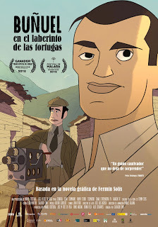 Buñuel en el laberinto de las tortugas. Director: Salvador Simó. Protagonistas: Jorge Usón (Luis Buñuel), Fernando Ramos (Ramón Acín), Luis Enrique de Tomás (Pierre Unik) y Cyril Corral (Eli Lotar), entre otros. Guionistas: Eligio R. Montero y Salvador Simó, basado en la homónima novela gráfica (2008) de Fermín Solís. Sygnatia / Glow / Hampa Studio. España, 2018. Sin estreno comercial en la Argentina, proyectada dentro de los ciclos