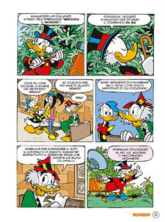 En el estricto rubro de las historietas, Topolino brilla por su ausencia en un número íntegramente dedicado al mundo de los patos, con las presencias casi exclusivas de Paperino (Donald) y Zio Paperone (Tío Rico). Cortos gags de una página (algunos con la obligada temática navideña que impone el calendario), aventuras más o menos largas de corte policial, costumbrista y hasta fantástico, material de relleno que acompaña (más o menos dignamente) el plato fuerte: La mediáticamente explotada profecía maya sobre el fin del mundo para hoy, 21 de diciembre de 2012, a cargo de uno de los más grandes dibujantes (Disney y no) italianos de la actualidad: Giorgio Cavazzano, recuperador del más clásico espíritu de Carl Barks, para quien las locaciones exóticas funcionaban como puerta de ingreso a la aventura, a la gran Aventura, aquella que sirve para formar al ser humano.