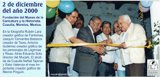 (Información de prensa) Estimados amigos, doce años hace que fundamos el Museo de la Caricatura y la Historieta, el 2 de diciembre del año 2000 en Cuautla, Morelos, con la ayuda de muchos de ustedes.Con la presente les comunico que el tradicional evento que realizamos para rendir homenaje a destacados artistas mexicanos lo celebraremos en el mes de febrero, en el marco de los festejos del rompimiento del Sitio de Cuautla. Les estaremos enviando la fecha y el programa con antelación.