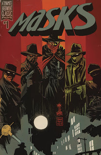 Masks, la miniserie de ocho entregas con que Dynamite Entertainment busca cohesionar las distintas licencias pulp que explota en este momento en formato cómic, hace de esa esencia mítica su mayor fortaleza. Por un lado, al unir en un mismo escenario a La Sombra, El Avispón Verde y Kato, El Zorro y El Araña (más El Murciélago Negro, El Lama Verde, Terror Negro y Miss Furia, en números venideros de acuerdo con los datos adelantados por la propia editorial) no hace otra cosa que cumplir con el sueño del pibe. Del pibe que lee y de los pibes que la hacen, si hemos de creer los comentarios volcados por los autores. Y, al mismo tiempo, las disimiles características innatas de los personajes protagonistas le permite abordar la tensión dialéctica entre la Ley y la Justicia tan cara al pulp.