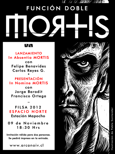 Además, aprovechando la ocasión, Francisco Ortega y Jorge Baradit hablarán del volumen In Nomine Mortis, de próxima aparición, que cerrará la trilogía sobre El Siniestro Dr. Mortis.Para ingresar, impriman la invitación adjunta. Vengan con amigos.