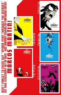 Medio siglo de vida no se cumple todos los días. Y por ello Marvel decidió festejar los 50 años del Hombre-Araña a lo grande. Siete revistas puestas a la venta en octubre, que echan una mirada hacia atrás mientras termina de perfilarse el negro porvenir que aguarda al trepamuros de aquí a un par de meses, de acuerdo con lo que prometen los avances del The Amazing Spider-Man Nº 700, destinado a ser el último de la actual etapa del superhéroe. De ahí que uno pueda ver como leit-motiv del evento al examen de los elementos físico-psíquicos del pasado que han resultado constitutivos para la saga: La relación de Peter Parker con sus tíos y la relación del Hombre-Araña con su entorno.