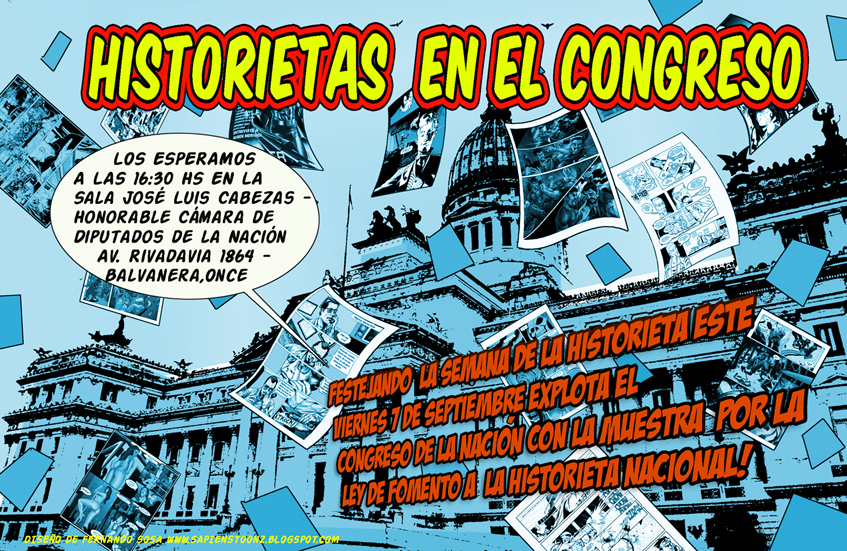 La diputada nacional Victoria Donda convoca este viernes 7 de septiembre a las 16:30 horas, en la sala José Luis Cabezas (en la Honorable Cámara de Diputados del Congreso Nacional), a la presentación del proyecto de ley para fomentar la Historieta Nacional. El proyecto que fue presentado este año con el número de expediente 4027-D-2012 agrega ítems sobre la ley de fomento del libro que hacen específicamente a la difusión y promoción de la historieta nacional.Estarán presentes en la cita los dibujantes Gabriel Guzmán, Gustavo Mazali, Fernando Sosa y Enrique Santana. Algunos de ellos trabajan para tiras de Europa y los Estados Unidos. También el presidente de la Comisión de Cultura de Diputados, Roy Cortina.Este proyecto fue trabajado conjuntamente entre Victoria Donda, sus asesores y los miembros de ADA (Asociación de Dibujantes de Argentina). Por otro lado, en la presentación de este proyecto de Ley se realizará una exposición de historietas y dibujos de dos docenas de jóvenes autores que vienen difundiendo y promocionando la iniciativa.[image error]