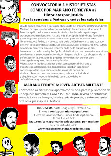 (Información de prensa) Por la condena a Pedraza y a todos los culpables, Historietas por Justicia convoca a artistas que aporten con su obra para la publicación de un segundo número de Comix por Mariano, revista de historietas sobre la lucha de Ferreyra, la búsqueda de justicia o sobre cualquier otra cosa que inspire su historia.
