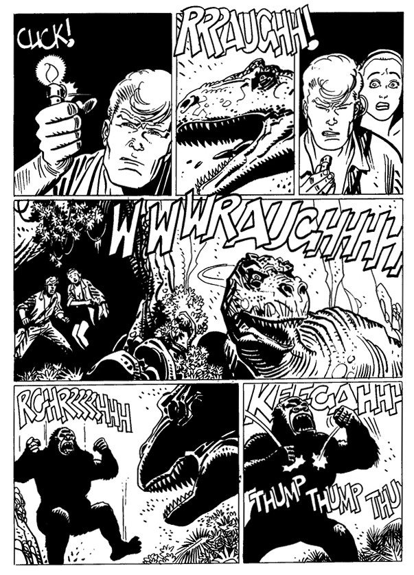 Y es que en verdad está pasando algo muy grande. La historieta es una ingeniosa variación sobre el primer encuentro de Martin Mystère con su amigo y compañero Java, el último Neandertal vivo; y del origen del archienemigo por antonomasia de la saga, el malvado Sergej Orloff, con los condimentos necesarios para poner (o no) una bomba atómica al alcance de Hitler. Pero más allá del discurso argumental, la trama de Castelli logra entablar un diálogo reverencial con la faz mítica de una realidad hecha sueño: La mafia, Nero Wolfe, Ellery Queen y Philo Vance, el fotoperiodismo de Charles C. Ebbets, Dick Tracy, las leyendas urbanas, los Horizontes perdidos de Frank Cappa, La guerra de los mundos (la de Wells y la de Welles), La Sombra y Doc Savage, El halcón maltés, El mundo perdido de Conan Doyle, Tarzán, el Dr. Cíclope y Boris Karloff, el Mickey Mouse de Floyd Gottfredson, la Marilyn Monroe de Con faldas y a lo loco. Y King Kong... ¿Qué más se le puede pedir a un cómic? ¿Qué más se le puede pedir a la vida?