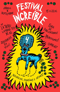 (Información de prensa) Quedan todos invitados al 4º Festival Increíble de Historietas, Fanzines y Afines, a realizarse el sábado 8 de septiembre, de 15:00 a 22:00 horas, en FM La Tribu, Lambaré 873, Ciudad Autónoma de Buenos Aires.