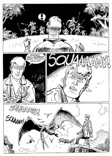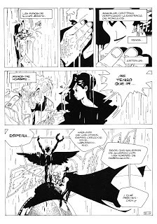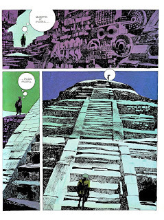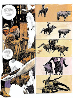 Este tipo era otra cosa, diferente a todo lo anterior (y diferente a todo lo porvenir, aunque todavía no lo supiera). Y no era solamente por la arquitectura emocional de su puesta en página, capaz de explotar la imaginería ilustrativa del póster sin perder nunca la capacidad narrativa de las secuencias. Tampoco era por la tensión latente entre la línea y el color que traía consigo, ni por la evocación de los tiempos idos (tiempos míticos) que exhibía como testimonio sedimentado de la Historia del Arte, de la fiereza y la belleza que cabe en el cuerpo de un Hombre. Lo que más me impactó fue su capacidad para transmitir la relación (reverencialmente religiosa) que, siempre, las personas terminamos por entablar con el ambiente que nos rodea, ya sea en su estado natural o intervenido por la cultura humana: La pequeñez del Hombre frente a la Creación.