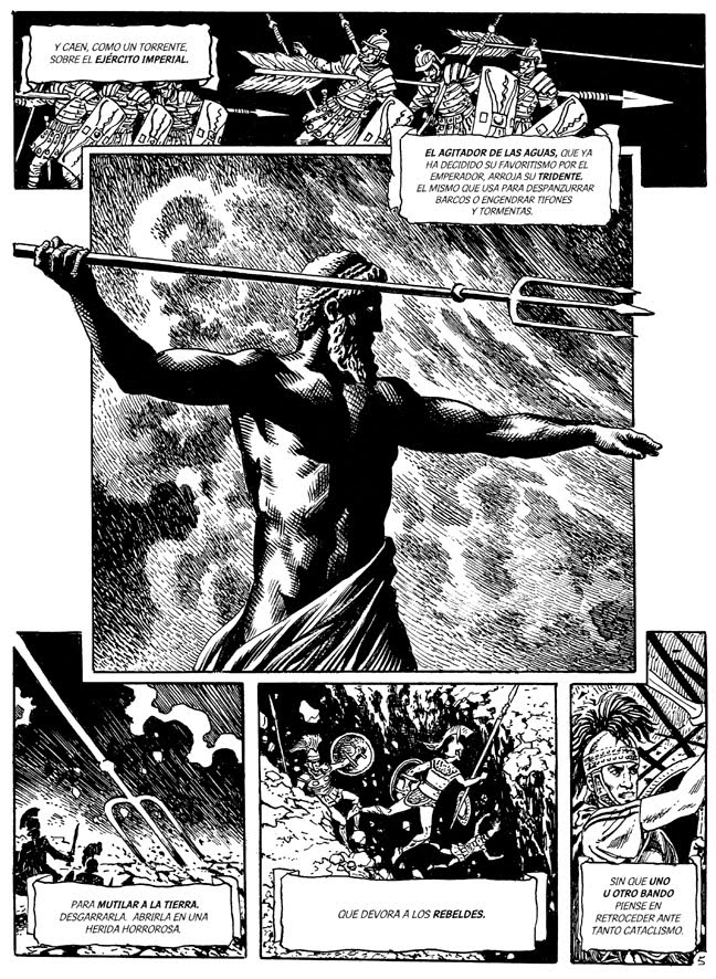 Un péplum de Mazzitelli y Alcatena. Así reza el cartelito que cuelga en la primera página de cada episodio de Imperator. La explicitación concreta del género que dará estructura interna a la narración, poema épico de carácter moral y religioso donde la pasión de los hombres se verá superpuesta con los caprichos de los Dioses, como corresponde a la naturaleza histórico-legendaria del relato homérico. Explicitación concreta e incompleta, porque más que un péplum, Imperatordeviene el péplum, ejemplo definitivo de todo aquello que tiene para ofrecer al mundo contemporáneo el universo de los mitos de la edad clásica: La fuerte hermandad entre la realidad y la fantasía, la revisitación multicultural y multimitológica (principalmente la grecorromana, pero también conviven aquí la persa, la árabe, la celta y la fenicia, entre otras que se perciben a simple vista), puestas al servicio de un estudio folclórico sobre la relación padre-hijo, habitada por celos, rencores, admiraciones mutuas. Y el derrame de sangre filial a la hora de manifestar un estilo en el ejercicio del Poder.
