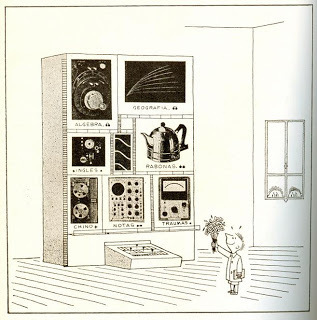 Delineaba en senderos de tinta la pregnancia de los nuevos dioses surgentes: “El automóvil”, “el dólar” y “la computadora”, claro está, muchos años antes de la eclosión de la computadora personal. En épocas en las que a modo de hipótesis fantásticas se avizoraban tiempos ficcionales en la Tierra.