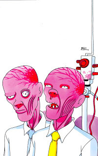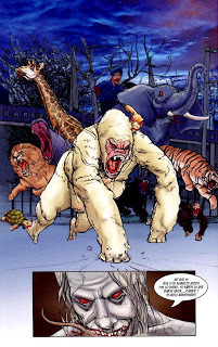 Pero lo mejor de [•REC], el cómic, es que también funciona para los recién llegados (a la saga, que no al género). Inscriptos de lleno en la tradición antológica de los Cuentos de la Cripta o los relatos de Creepy, los guiones de Hernán Migoya explotan la figura de Tristana en el doble rol de protagonista y anfitriona, explorando sabiamente la lógica de transmisión del terror en escenarios claustrofóbicos, física y emocionalmente. Con la presencia tangible del MAL como mediador permanente, Migoya filetea pequeñas historias cotidianas infectadas por el virus de la locura, la crueldad y una evidente sed de venganza. Y lo hace de manera irreverente, apelando al humor (cuando hace falta), a la truculencia (cuando es necesario) y a los datos de la realidad que aporten al contexto: Los curas pederastas, los mitos urbanos sobre Copito de Nieve (el único gorila álbino del mundo, fallecido en 2003 en el zoológico de Barcelona) y la sempiterna crisis económico-financiera que desangra España.