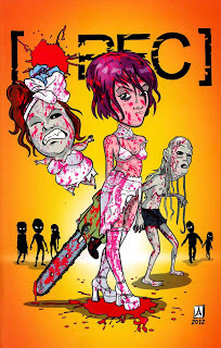 [•REC] Argumento: Paco Plaza y Jaume Balagueró. Guiones: Hernán Migoya. Dibujos: Andrea Jen, Salvador Sanz, Feliciano García Zecchin, Álvaro Ruilova y Joan Marín. Ilustradores: Alejandro Colucci, Gabriel Wque, Carlos Gambarte, Rubén Rojas, Pablo Marcos, Diego Olmeos, Sagar Forniés, Studio Kôsen, Miguel Ángel Martín, Jordi Pastor, Carla Berrocal, Pier Brito, Rafael Fonteriz, Angel, Pedro Espinosa, Natacha Bustos, Rubén Sáez y Luis Nct. Portada: Alejandro Colucci. Editor: Hernán Migoya. 94 páginas a color y en blanco y negro. Ediciones de Tebeos. ISBN:978-84-9947-422-9. España, marzo de 2012.